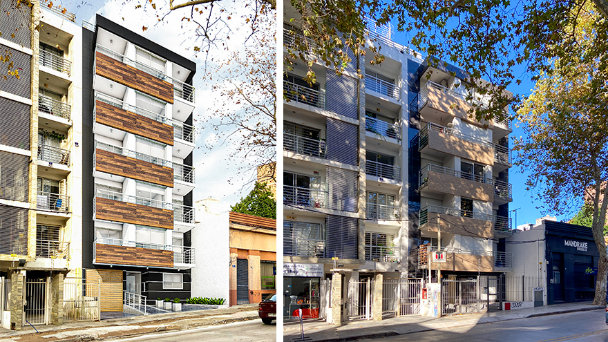 - 11 apartamentos monoambiente y 12 apartamentos de 1 dormitorio. Estacionamiento para 16 vehículos en planta baja y subsuelo.