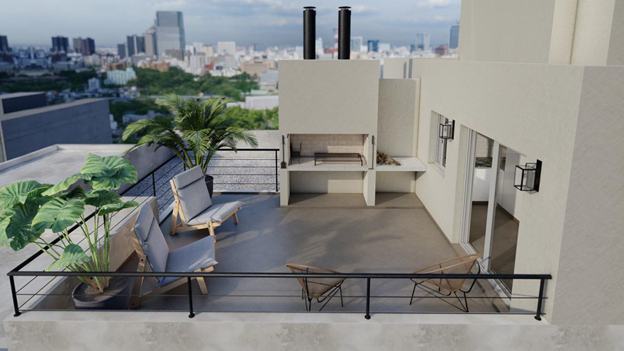 - 13 apartamentos monoambiente, 23 apartamentos de 1 dormitorio, gimnasio, barbacoa y parrillero al aire libre. estacionamiento para 18 vehículos en planta baja y subsuelo.