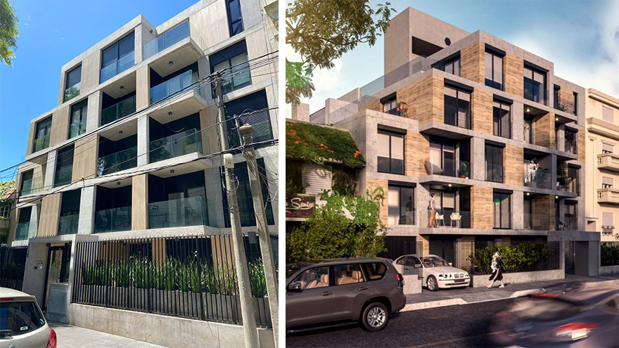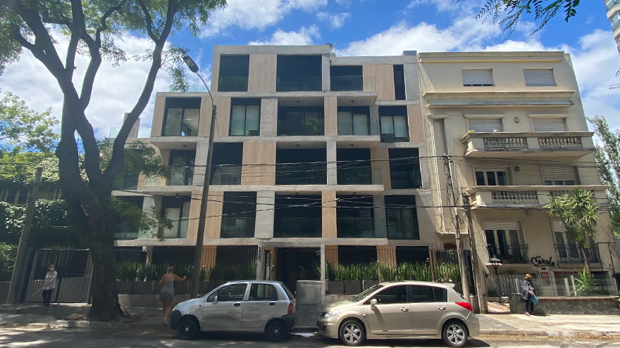 - Estacionamiento para 18 vehículos en subsuelo, 27 apartamentos monoambientes y 14 apartamento de 1 dormitorios. Gimnasio en subsuelo y parrillero exterior en último nivel.